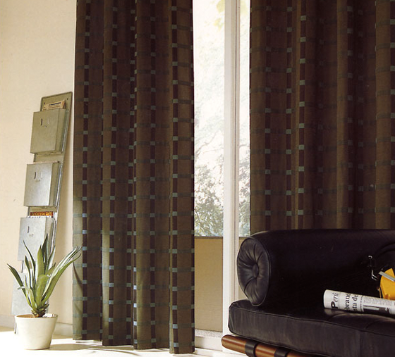 外から差し込む光の量を調節できるバーチカルカーテン。簡素なイメージになりがちなバーチカルカーテンも色にこだわると立派なインテリアになる。